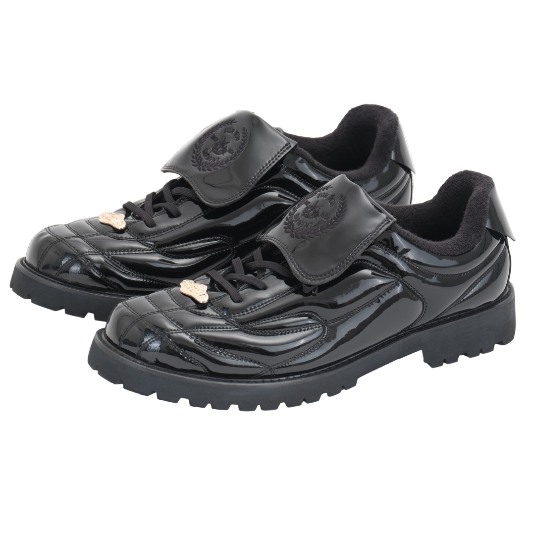 A signature elevated-stitch design with a distinctive puffed effect and a removable tongue for versatile styling. Premium vegan leather upper with a stainless-alloy GOAL logo; Rubber material with commando sole height 3.5cm and custom-molded for a unique effect, highlighted by the GOAL creator’s emblem. Shiny Black color — sizes 38–46. Lifetime warranty on sole glue.